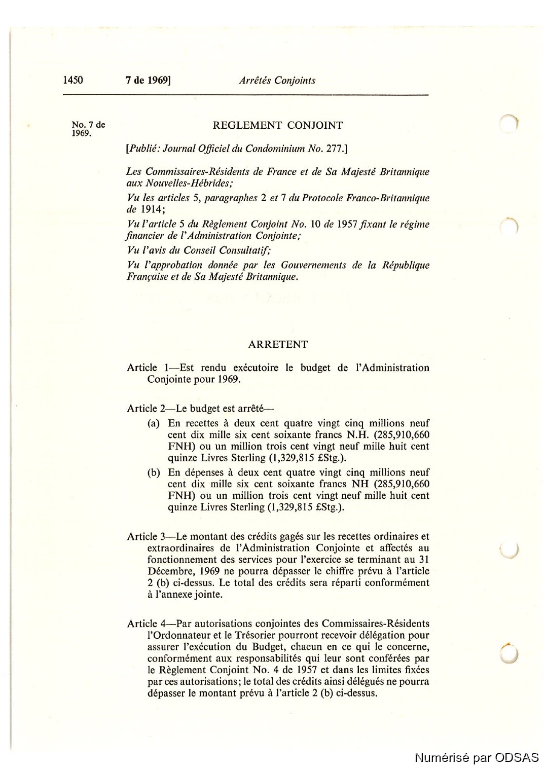Règlementation Conjointe des Nouvelles-Hébrides...