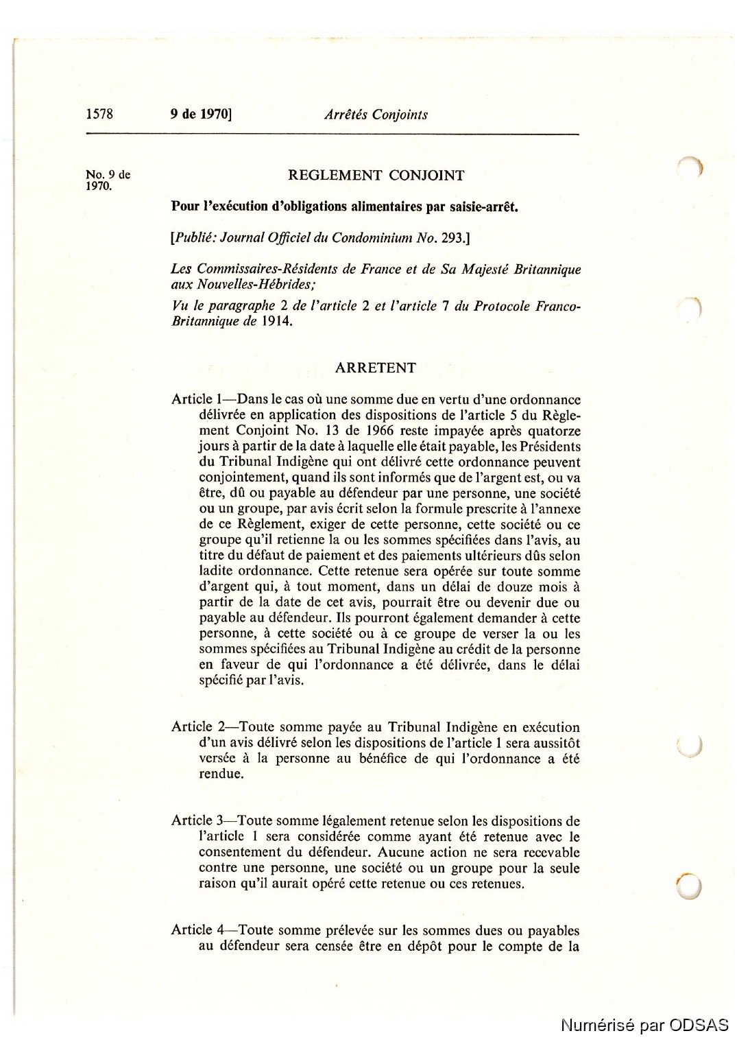 Règlementation Conjointe des Nouvelles-Hébrides...