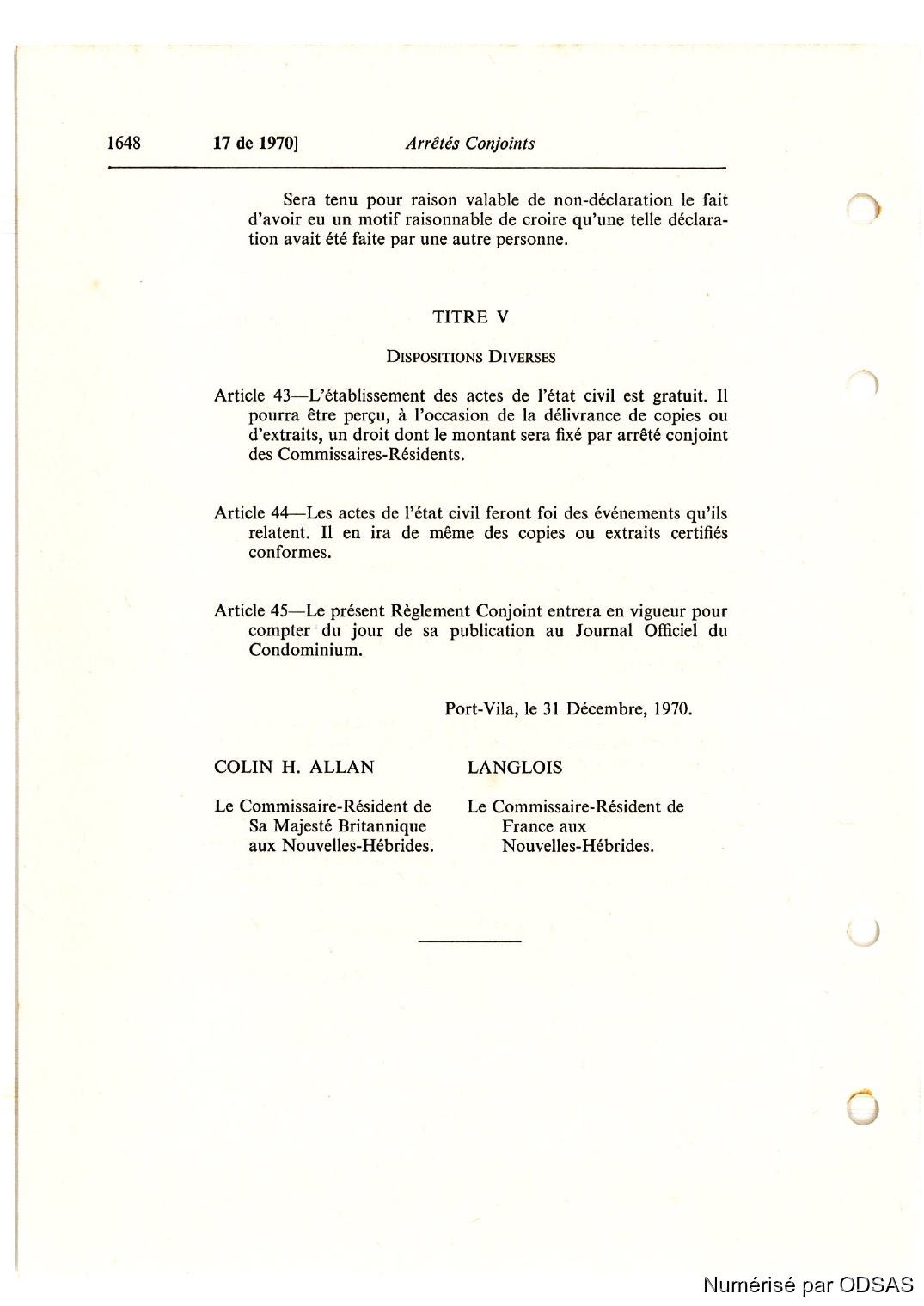 Quote this document 1973 [accessed: 2026/2/14]. "Règlementation Conjointe des Nouvelles-Hébrides, Tome 3" (Object Id: 198749). In Règlementation Conjointe des Nouvelles-Hébrides, Tome 3. ODSAS: https://www.odsas.net/object/198749.