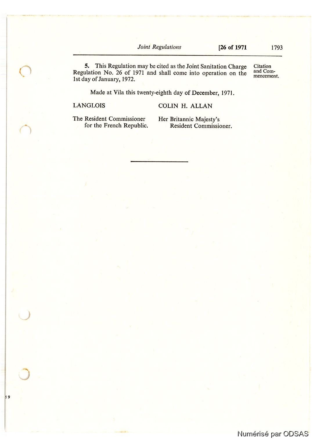 Règlementation Conjointe des Nouvelles-Hébrides...