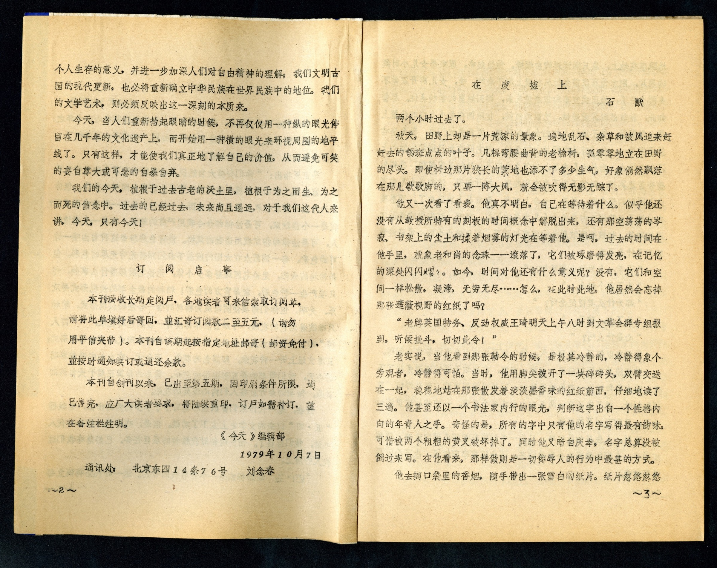 1978-1979 [accessed: 2026/1/23]. "Today Jintian 今天, n°1" (Object Id: 266807). In