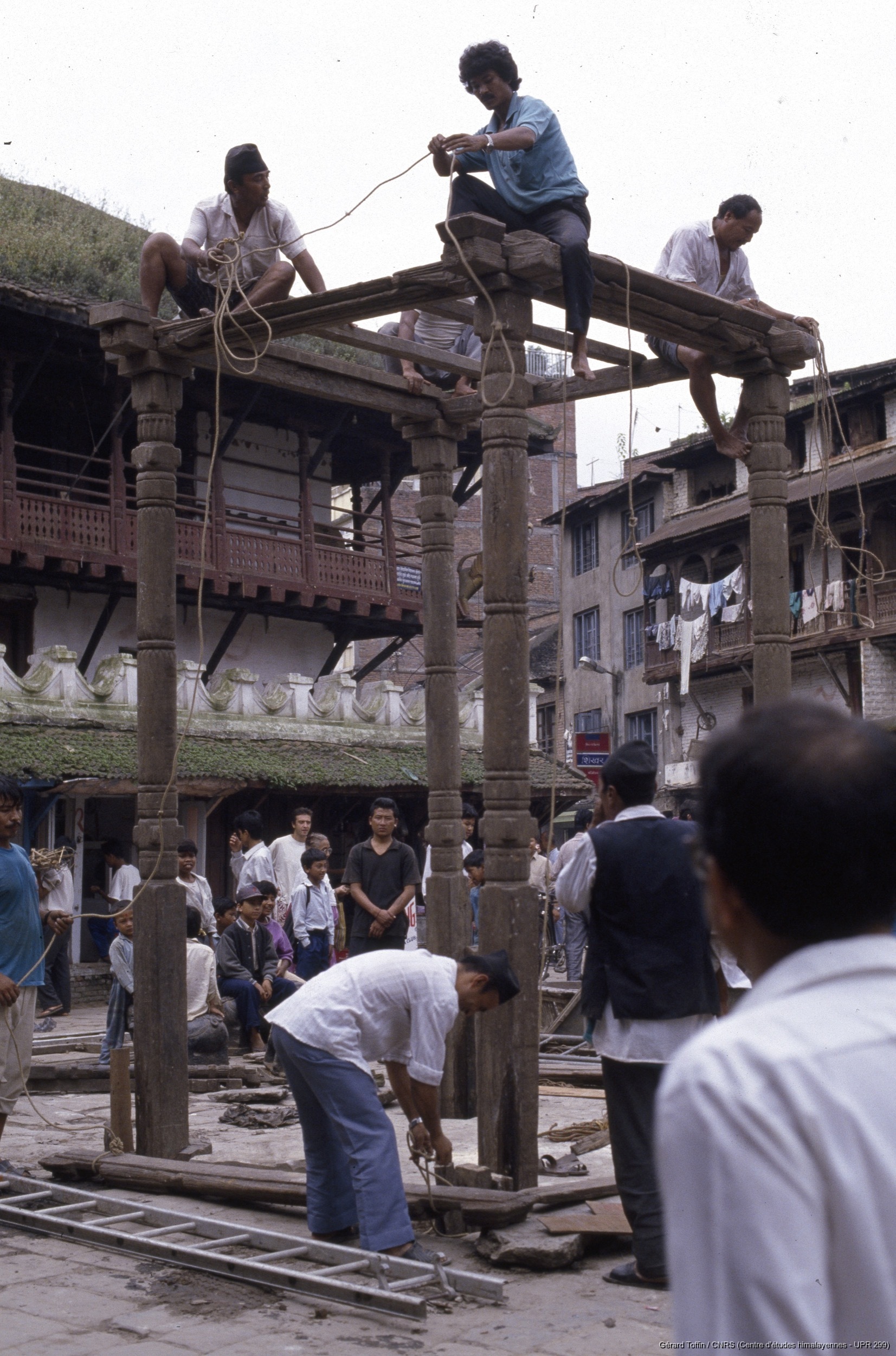 Quote this document Toffin, Gérard 1995 [accessed: 2026/2/3]. "Indra Jatra : construction de la structure suportant la statue d'Indra " (Object Id: 283971). In Album Indra Jatra (1974-2005). ODSAS: https://www.odsas.net/object/283971.
