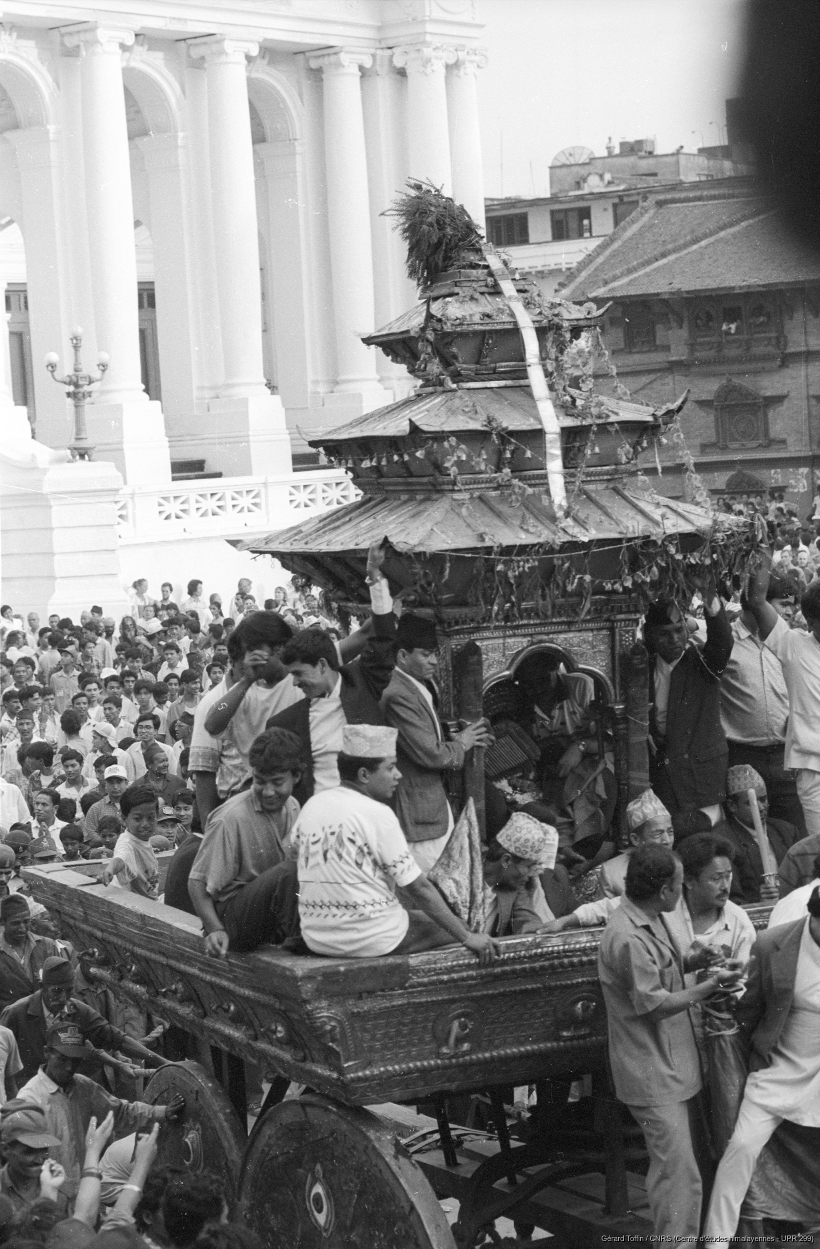 Quote this document Toffin, Gérard 1995 [accessed: 2026/2/3]. "Indra Jatra : char de la Kumari en procession (2e jour)" (Object Id: 284076). In Indra Jatra à Kathmandu (1995). ODSAS: https://www.odsas.net/object/284076.