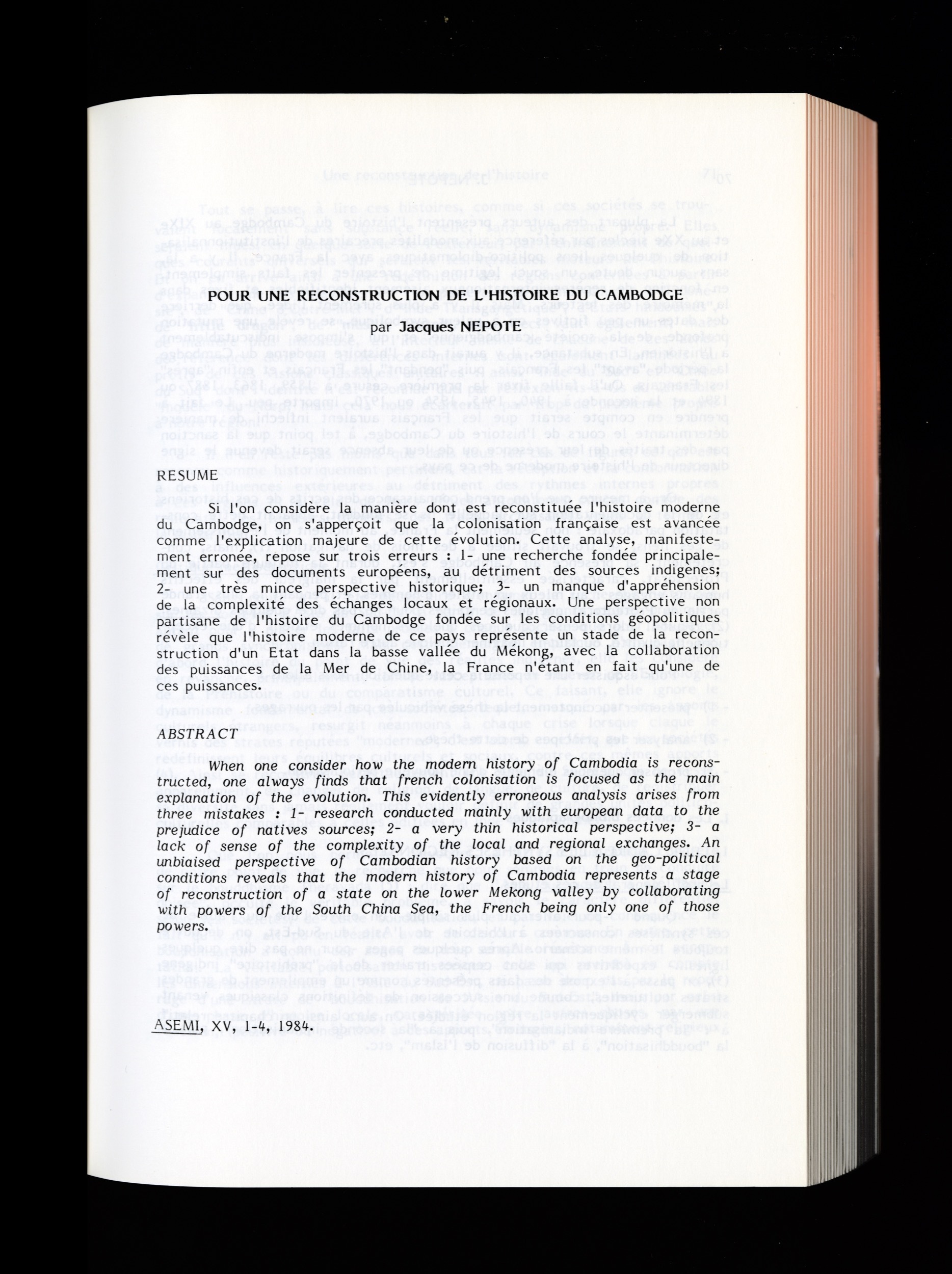 Asie du Sud-Est : Revue ASEMIASEMI 1984 XV_1_4299990<< >>