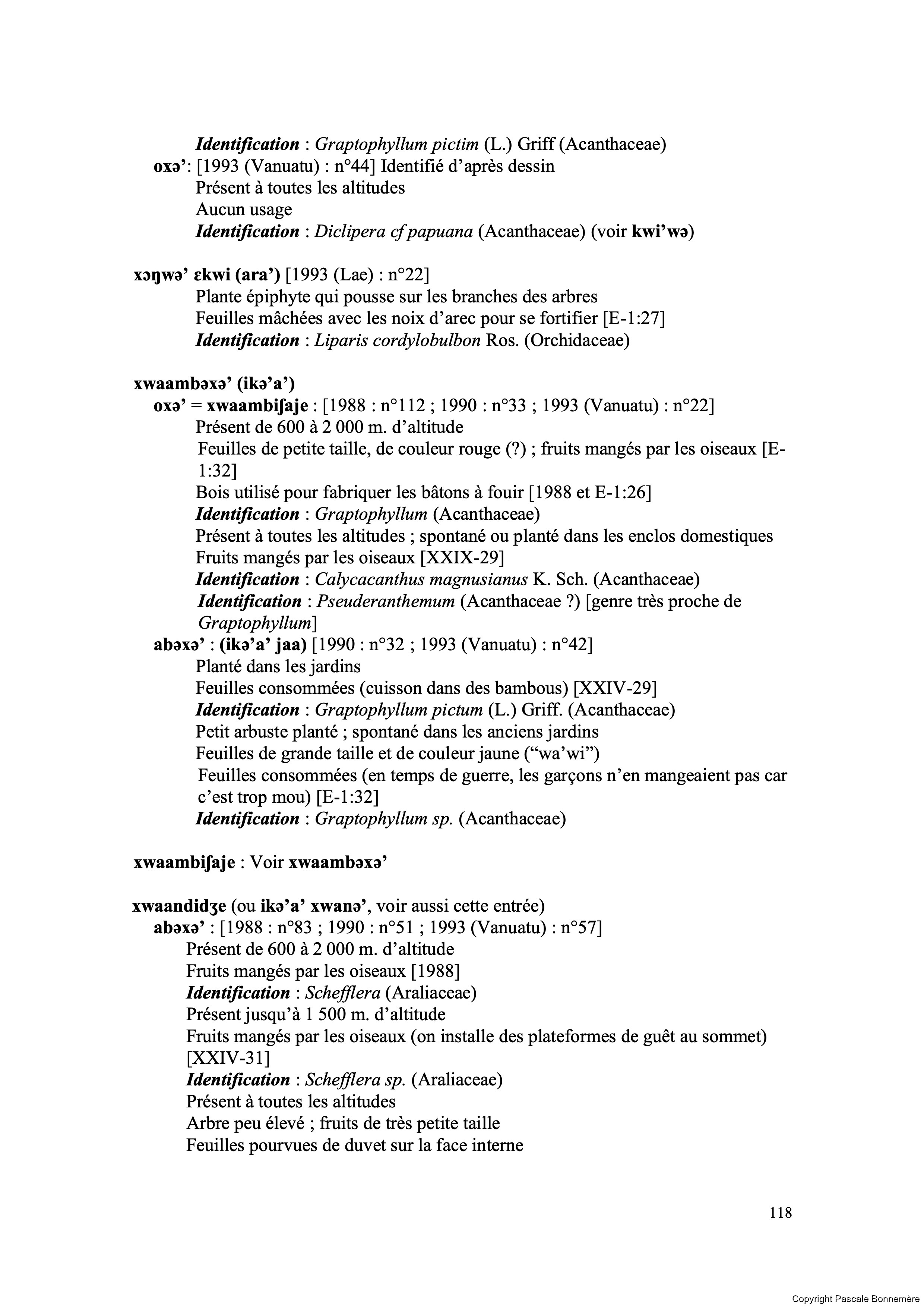 Archives de chercheurs: Pascale Bonnemère et Pie...Inventaire ethnobotanique ankave / Ankave Ethnobo...313347<< >>