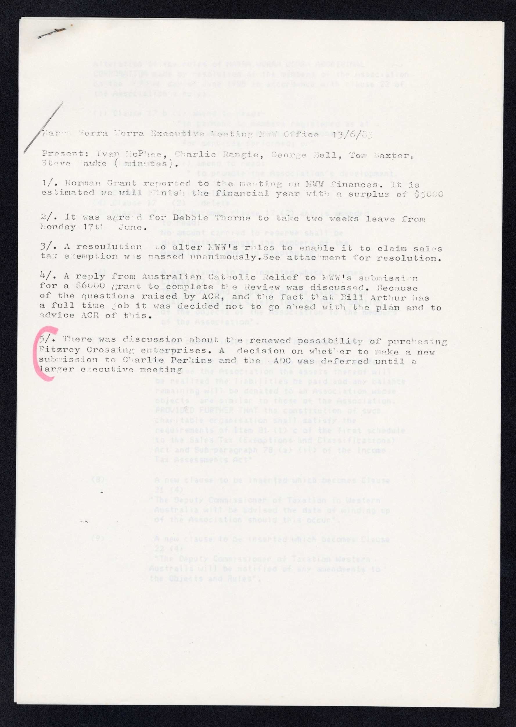 Quote this document 1980-1985 [accessed: 2026/2/3]. "Marra Worra Worra Minutes 1980/1985" (Object Id: 314165). In Marra Worra Worra Minutes 1980/1985. ODSAS: https://www.odsas.net/object/314165.