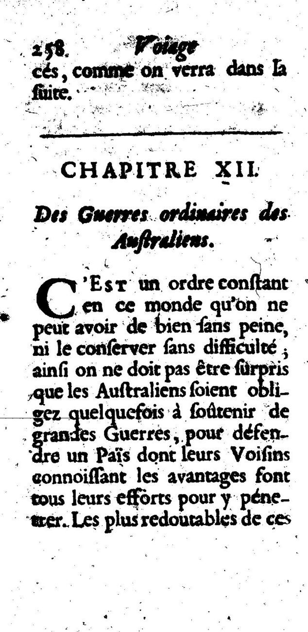 De Foigny, Gabriel 1692 [accessed: 2026/2/21]. "Chapitre XII. Des Guerres ordinaires des Australiens" (Object Id: 4116). In