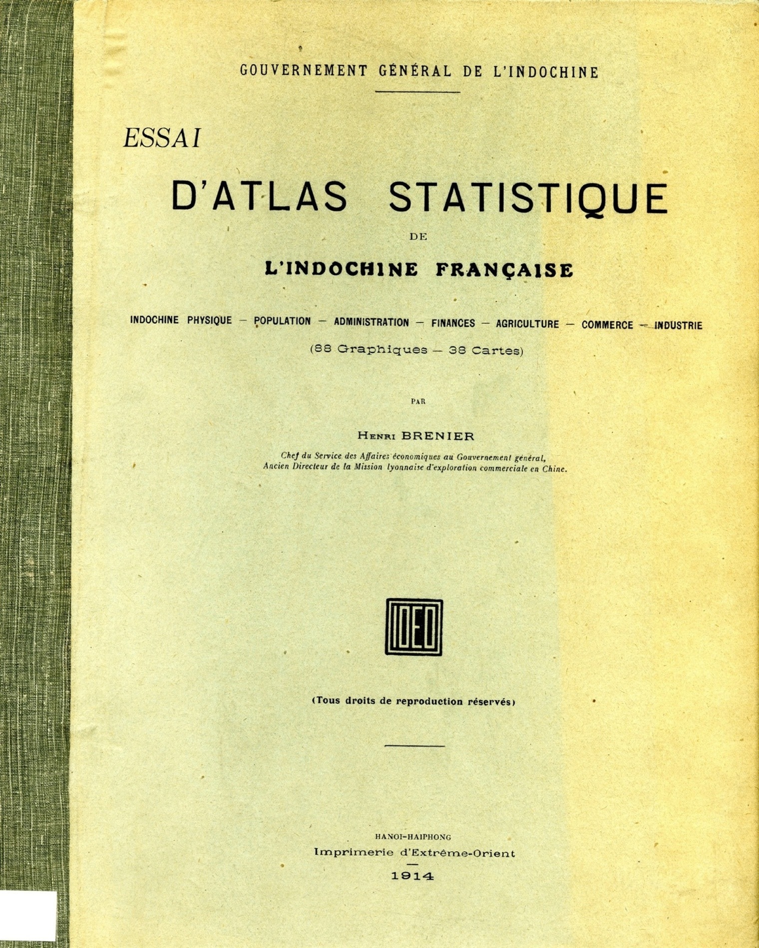Title/DescriptionEssai d'Atlas Statistique de l'Indochine Française (Henri Brenier)