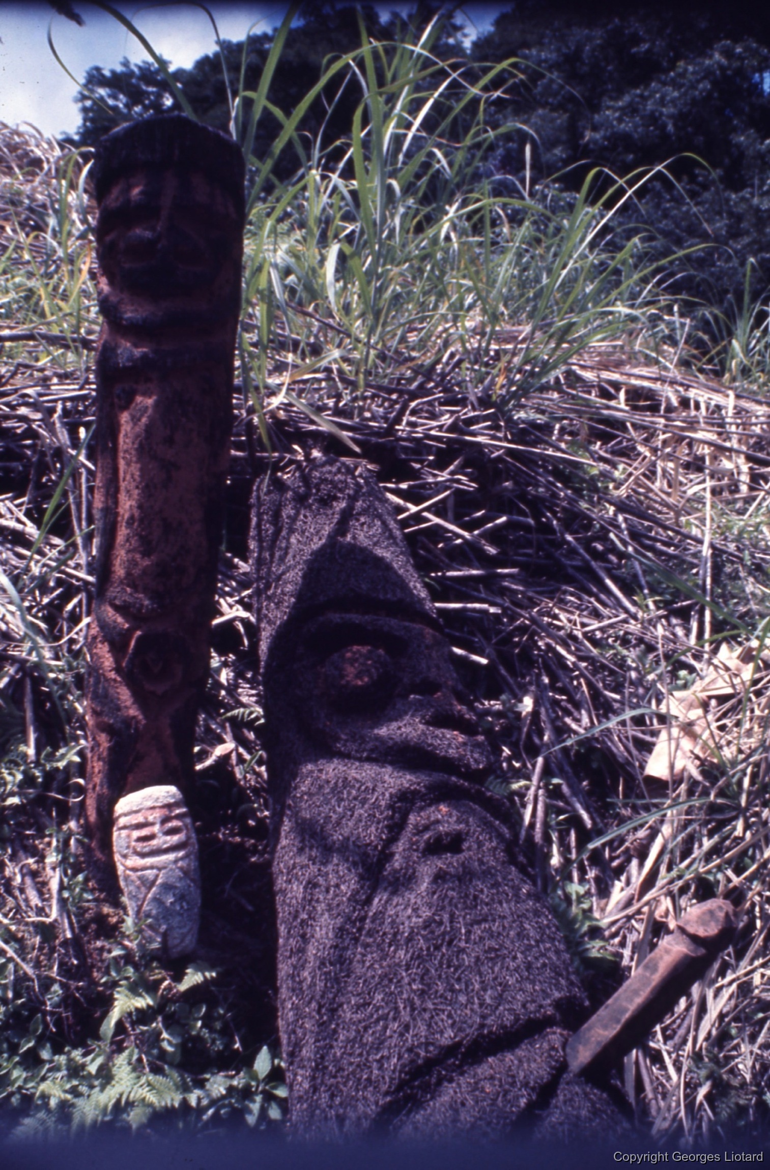 Title/DescriptionStatues en fougère: 25 septembre 1974 au matin : sur le sentier menant au Nasara, couple de statues en fougère en train de simuler l'acte sexuel. Lorsqu'on demande aux participants ce que cela représente, ils répondent : "Old fella chief em e stap play-play long road" (vieux chef qui prend du bon temps en courd de route)