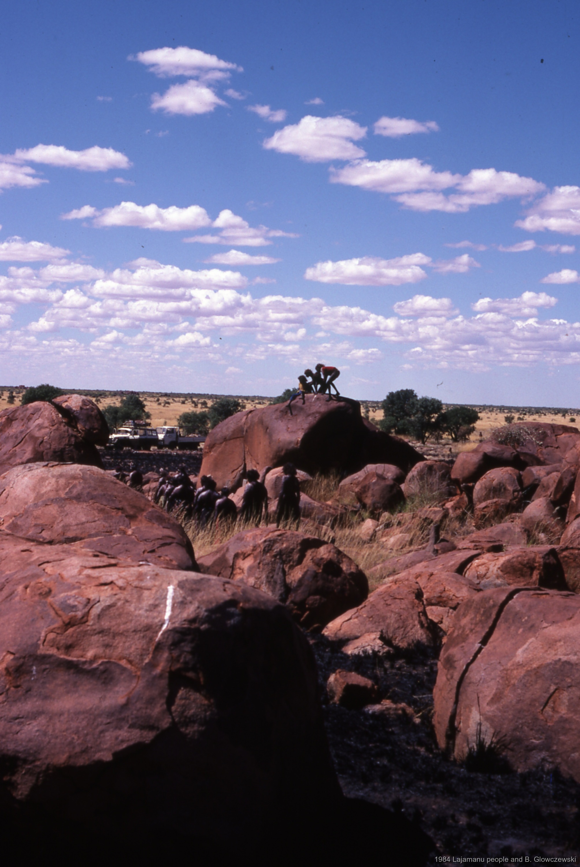 All 75 Photos of this set from 83874 to 83948 document the yawulyu rituals for JANGANPA and YAWAKIYI connected with the Dreaming granite rocks of Yarturluyarturlu.