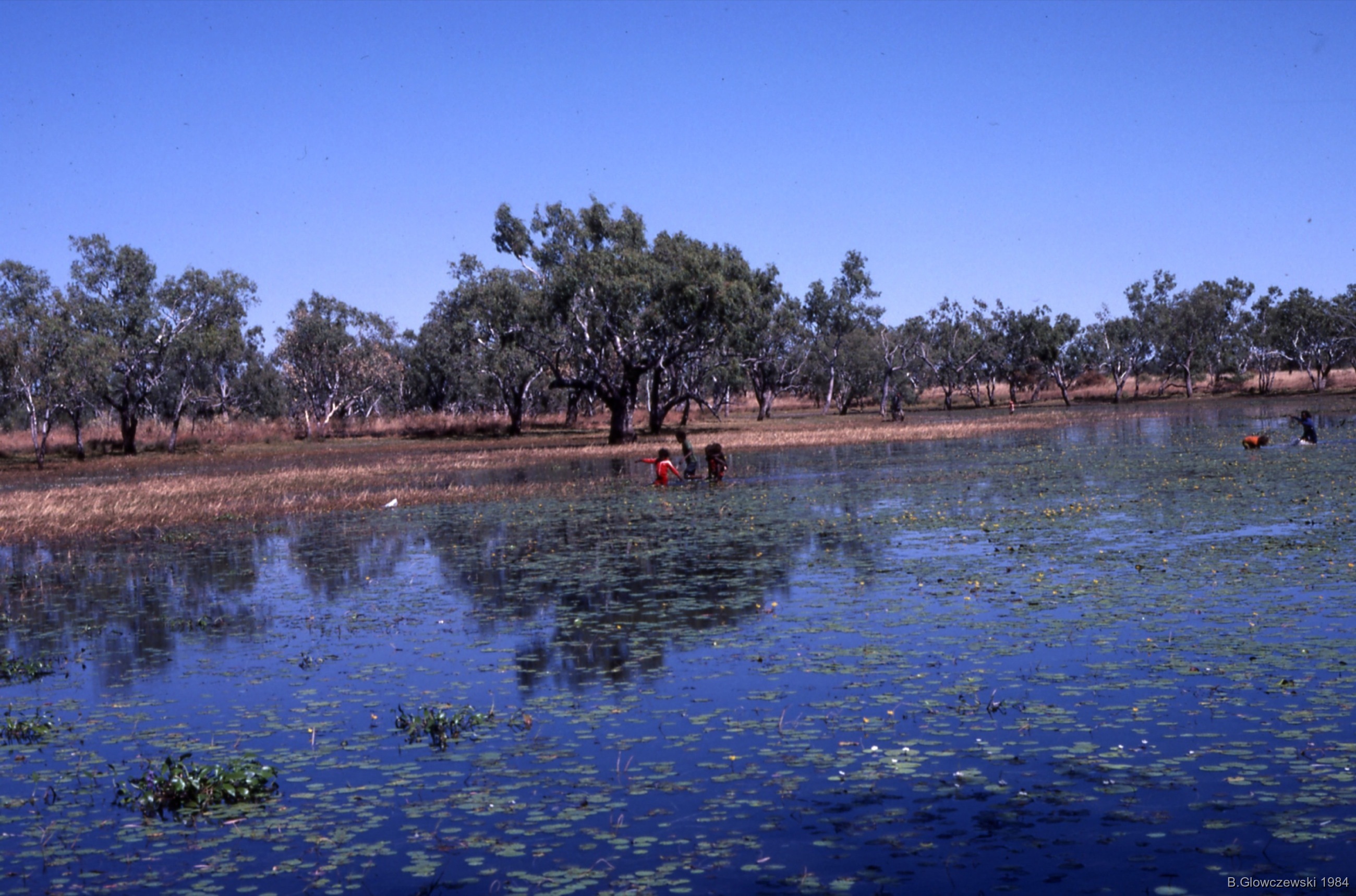 Quote this document Glowczewski, Barbara 1984/04/20 [accessed: 2026/1/20]. "Waterhole; Training to film" (Object Id: 83995). In Hunting, Lajamanu 1984 (2). ODSAS: https://www.odsas.net/object/83995.