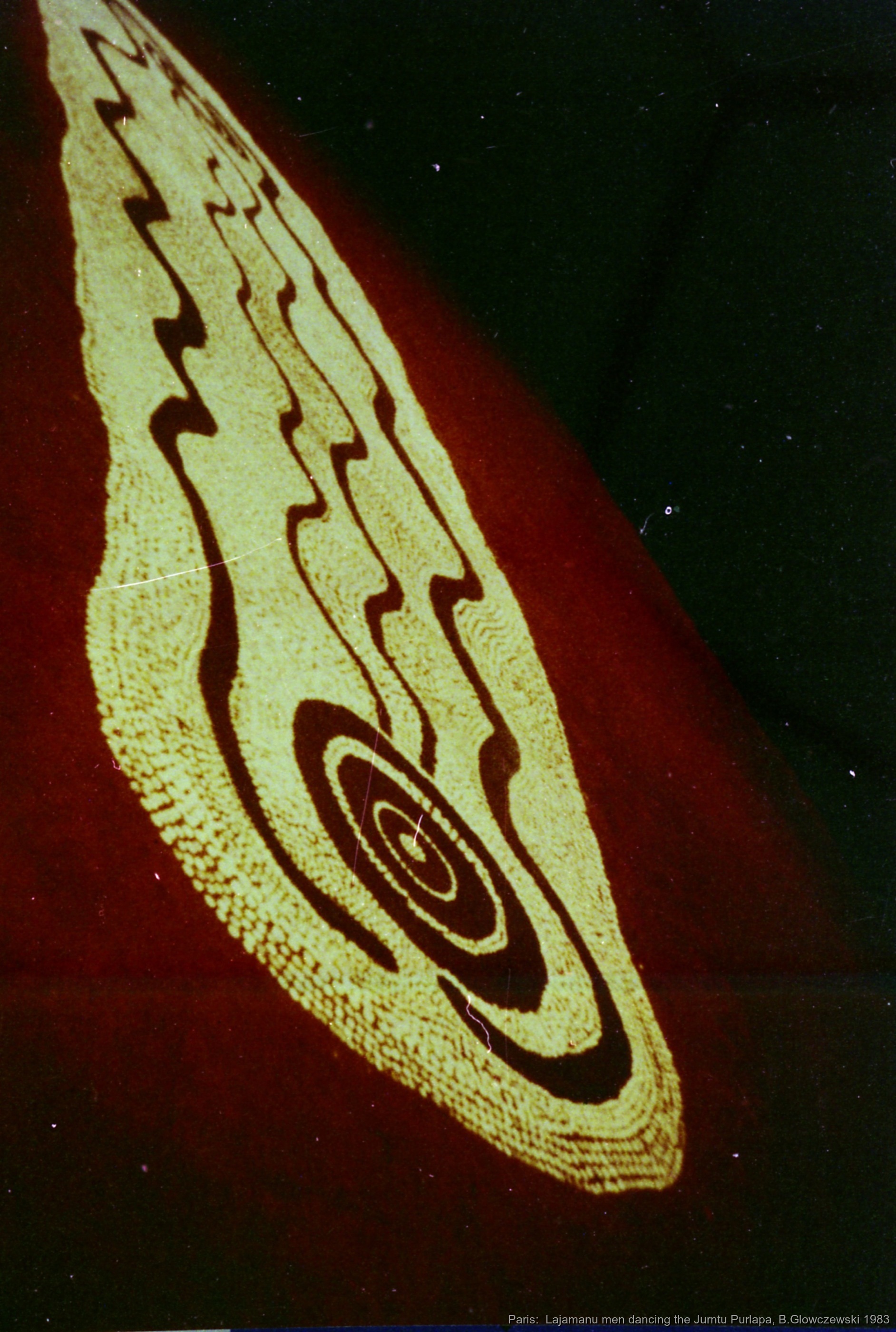 Paris november 1983: 12 Lajamanu men dancing Jurntu purlapa [