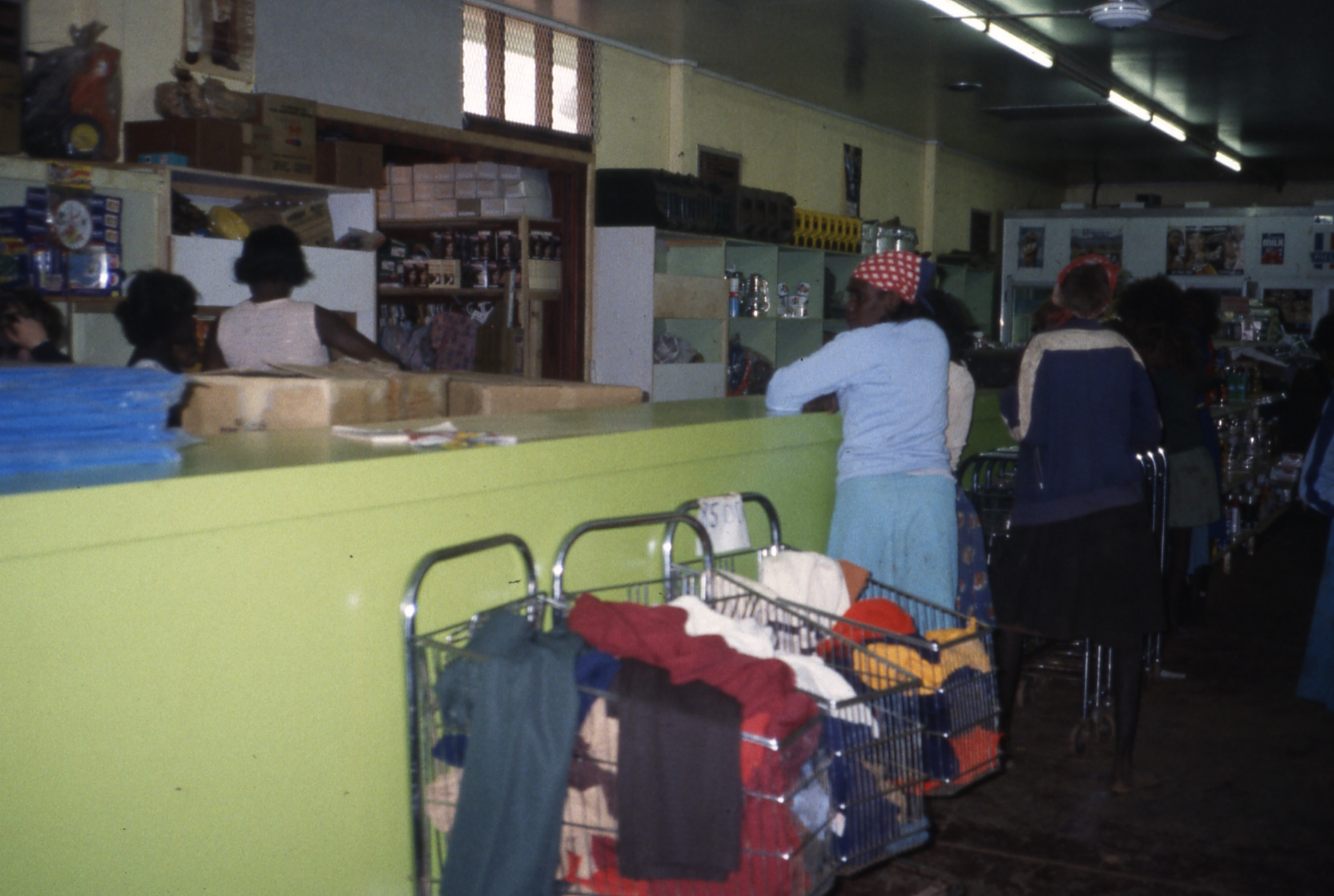 Life and youth in the Lajamanu camps 1984  / Inside the Lajamanu shop / Barbara Glowczewski / Lajamanu, Tanami Desert, Central Australia, NT