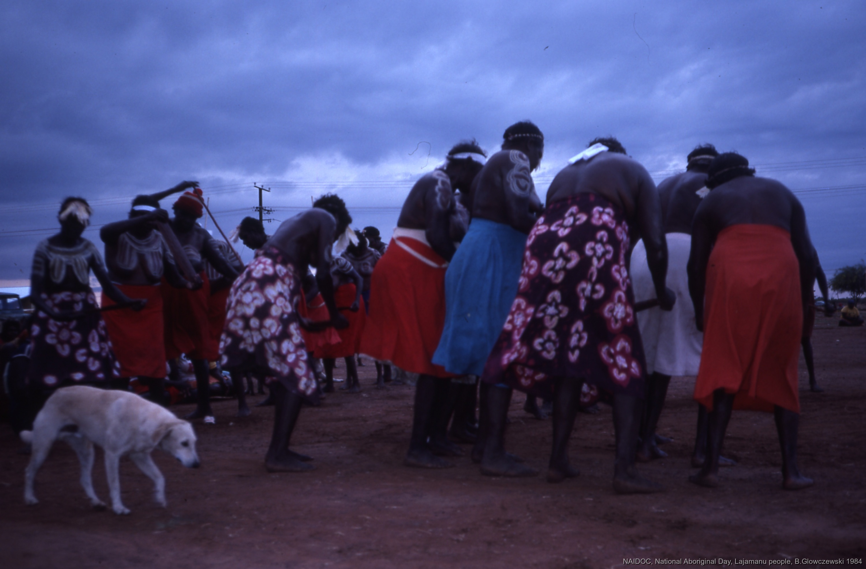NAIDOC: National Aboriginal Day, Lajamanu and Katherine, 1984 (photos) / Women dance Jurntu purlapa. Children and adults celebrate the end of School / Barbara Glowczewski / Lajamanu, Tanami Desert, Central Australia, NT