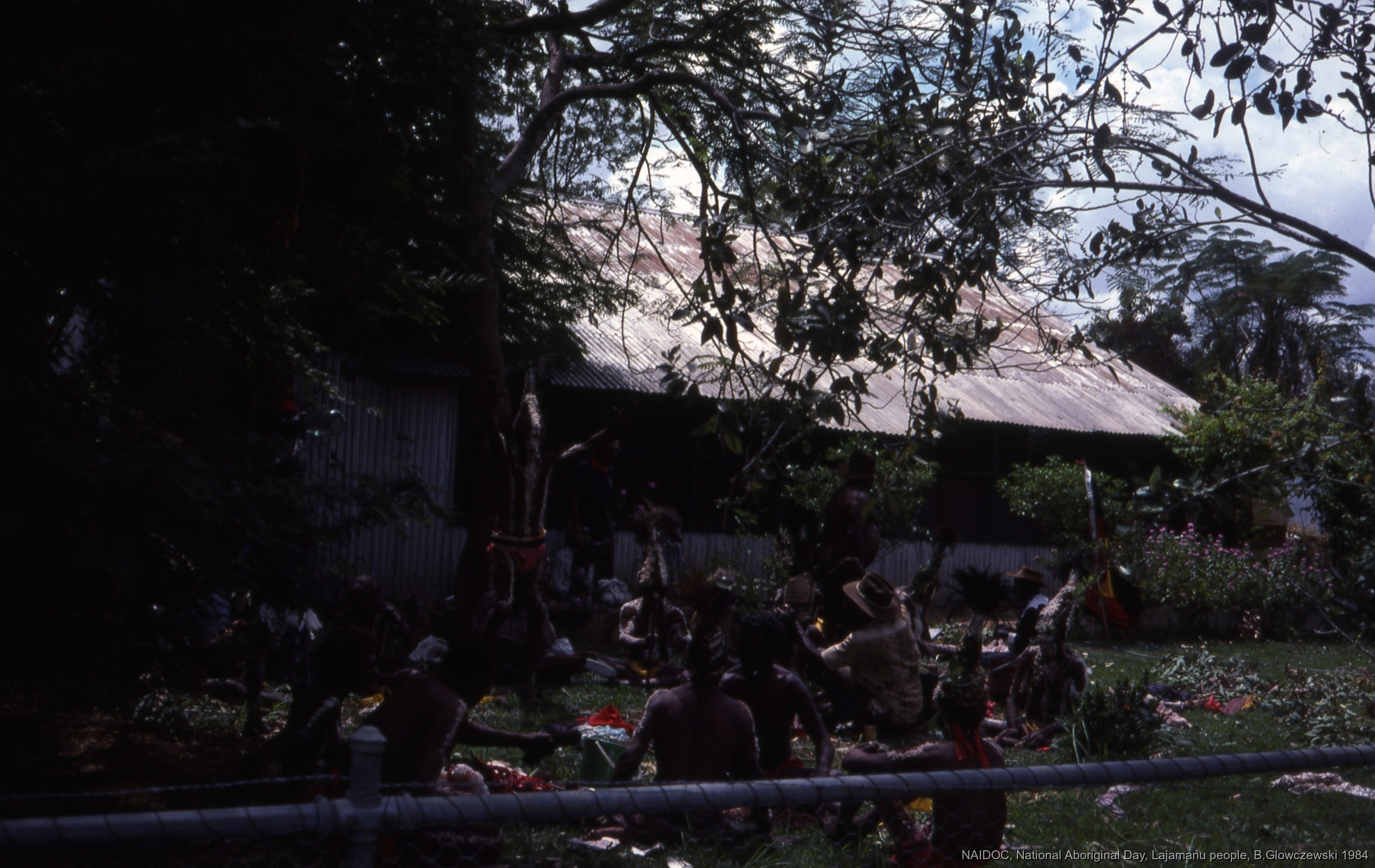 Glowczewski, Barbara 1984/09/14 [accessed: 2026/1/26]. "Lajamanu men get prepared for Jurntu purlapa. Public performance for NAIDOC" (Object Id: 84726). In