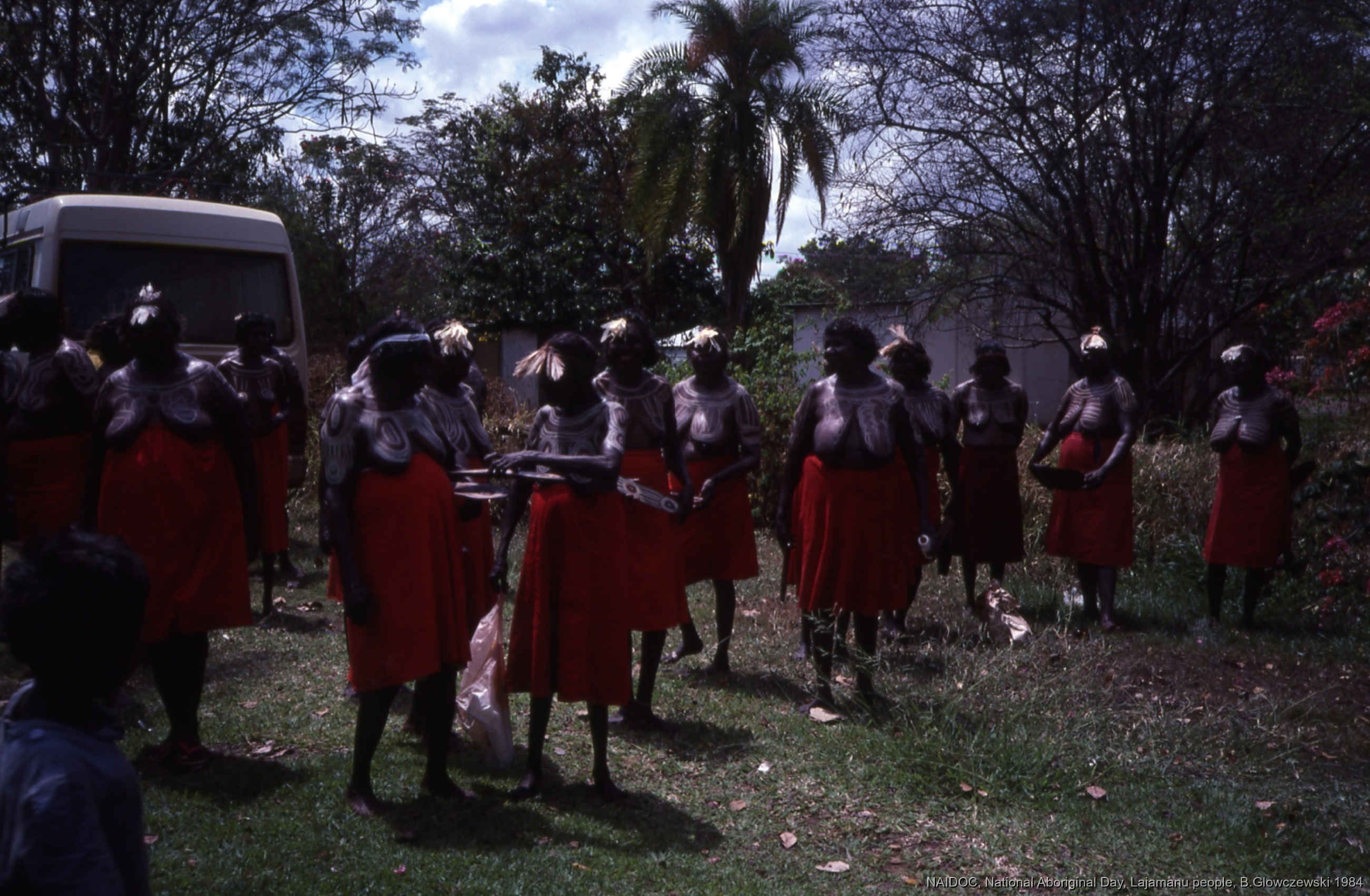 Quote this document Glowczewski, Barbara 1984/09/14 [accessed: 2026/1/26]. "Women are ready for marching. Public performance for NAIDOC" (Object Id: 84742). In NAIDOC: National Aboriginal Day, Lajamanu and Katherine, 1984 (photos). ODSAS: https://www.odsas.net/object/84742.