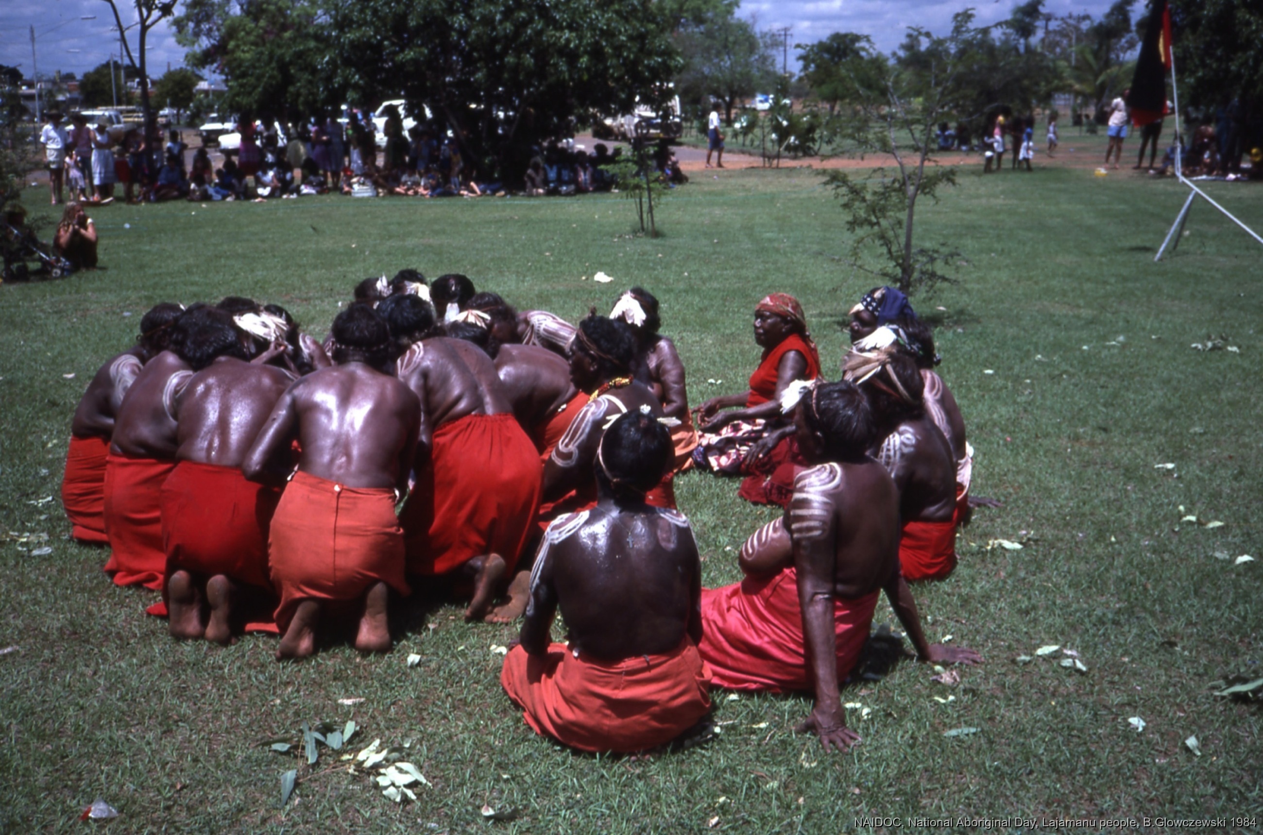 Glowczewski, Barbara 1984/09/14 [accessed: 2026/1/30]. "Lajamanu women dance Jurntu purlapa. Public performance for NAIDOC" (Object Id: 84792). In