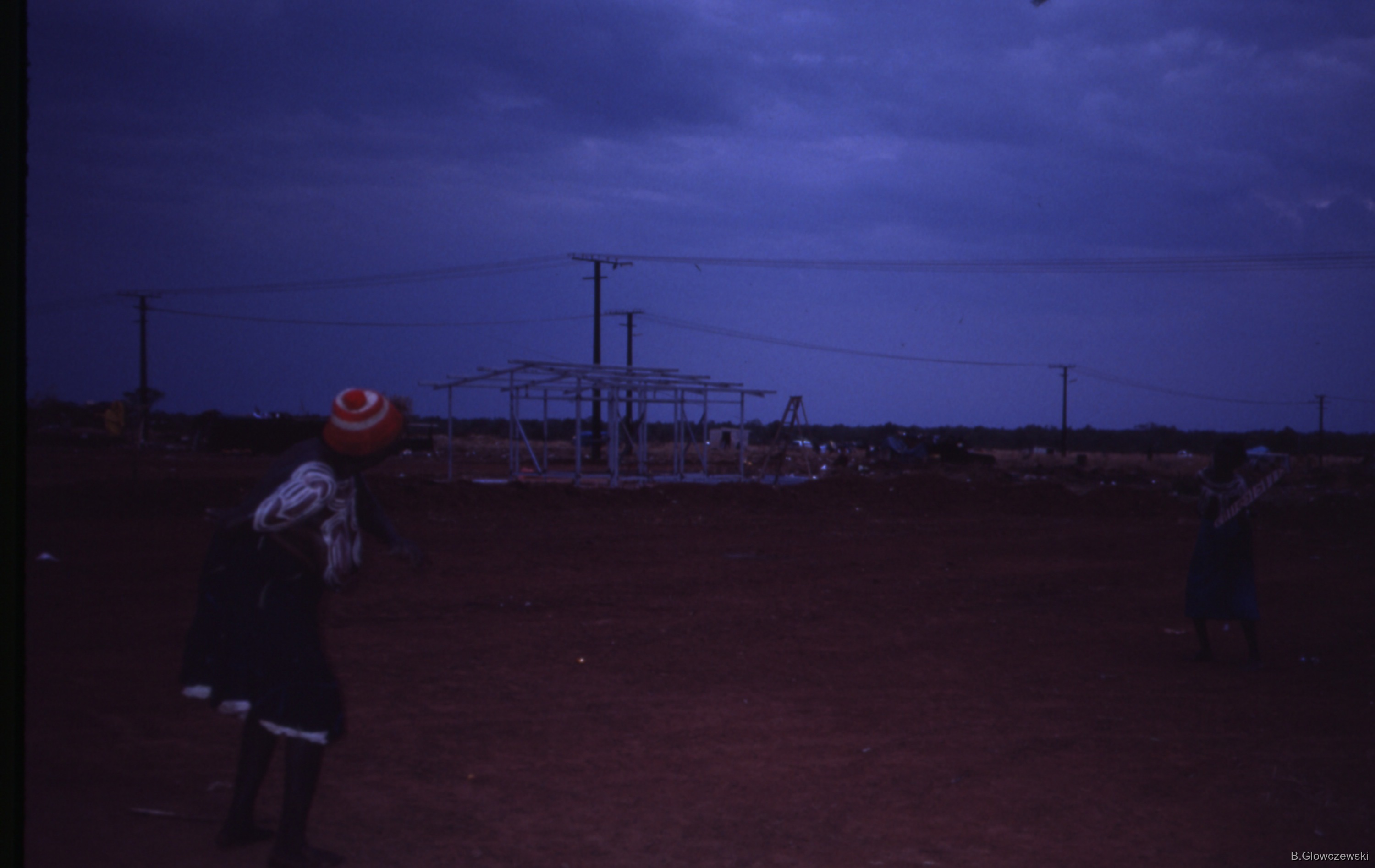 In the background: the construction of the "businesswomen museum", an iron shed for which the Lajamanu Law women raised money to get complementary funding from a mining Trust Fund supporting community projects: they wanted to use it to store their RITUAL objects (see set on ODSAS with B&W 1984 photos)