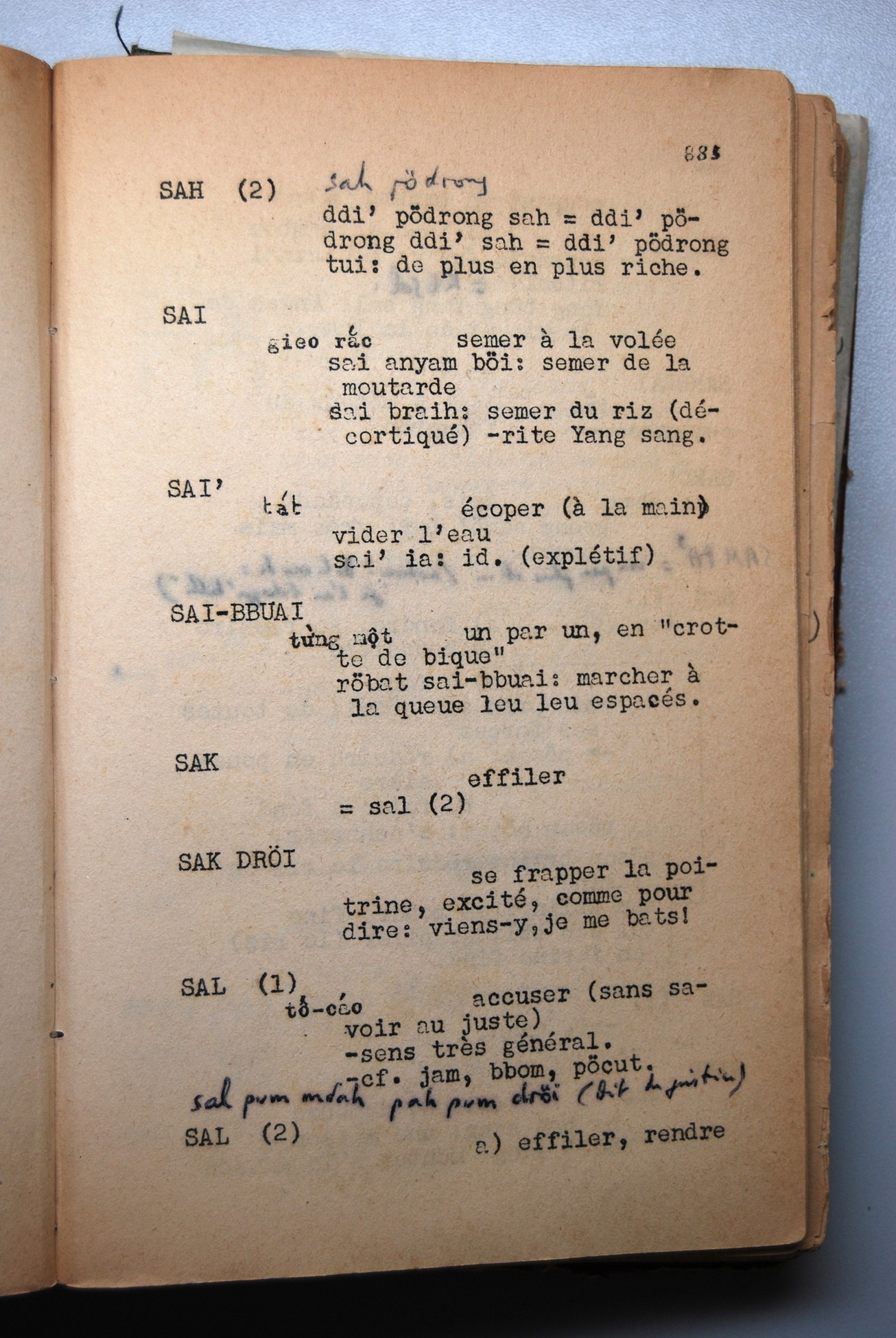 Ebauche de Dictionnaire de la Langue Jörai, Jacques Dournes [Set(s) 22]