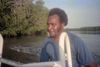 Filming Cannibal Tours. Crew member of the small boat that was used to sail on Sepik tributaries and visit villages () / On the Sepik river, Papua New Guinea |  | | | | | |
