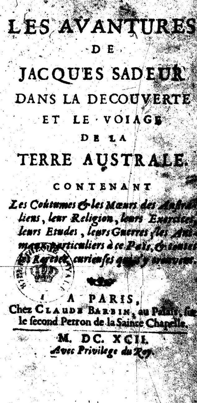 De Foigny, Gabriel 1692 [accessed: 2026/2/21]. "Les avantures de Jacques Sadeur dans la découverte et le voiage de la terre australe" (Object Id: 3844). In