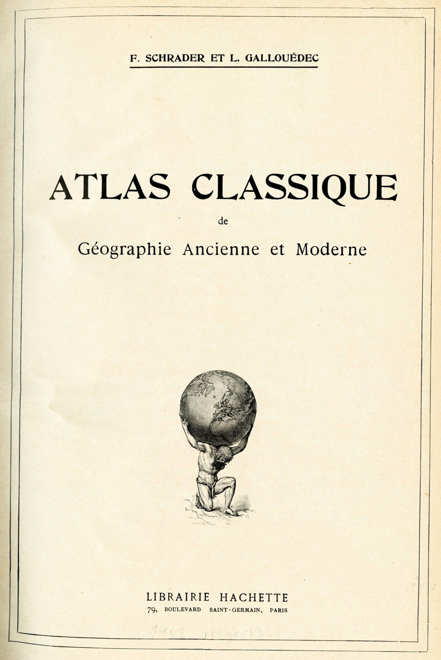 Atlas Classique de Géographie Ancienne et Moderne, Schrader et Gallouèdec / Couverture / Gallouèdec, Louis; Schrader, Franz /